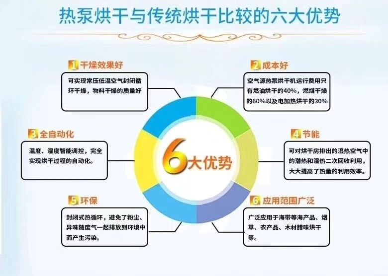 空气能热泵烘干,比传统电加热烘干节能60%以上。
