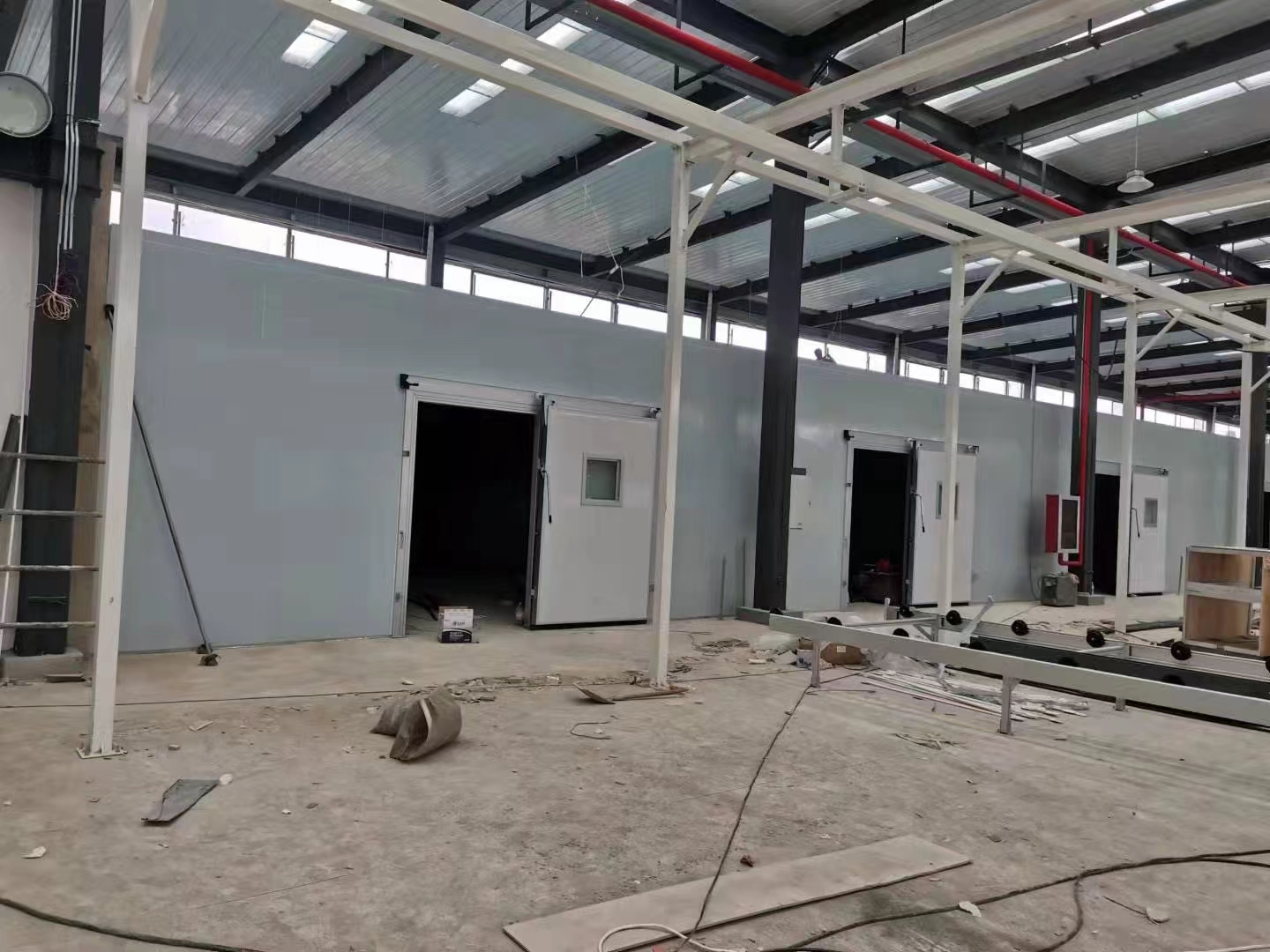 主体结构采用聚氨酯发泡的保温板,具有良好的保温性能,同时在展厅墙面设置参观窗,可用于客户参观和观察植物生长状态。
